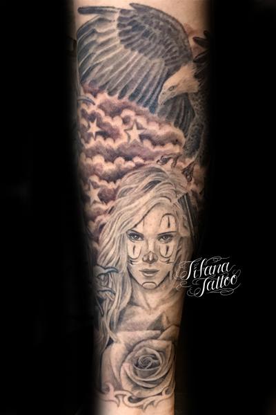 クラウンガール|イーグル|薔薇のタトゥー タトゥー 一覧 > Tattoo by Mica 2020.09.04 クラウンガール、イーグル|鷹、薔薇をひとつのデザインにまとめたチカーノ・タトゥー。所要時間の目安は14時間前後です。 Style メンズ チカーノ・ブラック&グレイ 洋柄 Motif 鳥 植物 Tattoo Tag クラウンガール Size B5サイズ以上 Body parts 腕