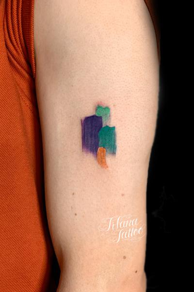 落書き風なカラー・タトゥー タトゥー 一覧 > Tattoo by AKI 2020.02.12 絵の具で落書きしたような質感にデザインした抽象画タトゥー。所要時間の目安は1.5時間前後です。 Style メンズ 洋柄 Tattoo Tag 抽象画 Size タバコサイズ Body parts 腕