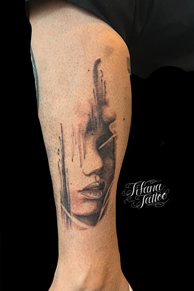 抽象的な女性のタトゥー タトゥー 一覧 > Tattoo by Kaz 2022.10.17 抽象的な女性を描いたファインライン・タトゥー。所要時間の目安は6時間前後です。 Style ファインライン メンズ チカーノ・ブラック&グレイ 洋柄 Motif ポートレイト Tattoo Tag 女 Size CDジャケット Body parts 脚