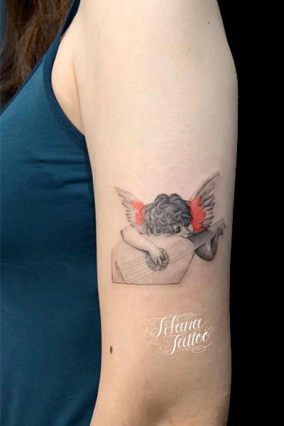 楽器を奏でる天使のタトゥー タトゥー 一覧 > Tattoo by AKI 2020.03.11 楽器を奏でる天使のモチーフをデザインしたファインラインタトゥー。所要時間の目安は2.5時間前後です。 Style ファインライン ガールズ 洋柄 Motif 天使・悪魔 音楽 Size タバコサイズ Body parts 腕