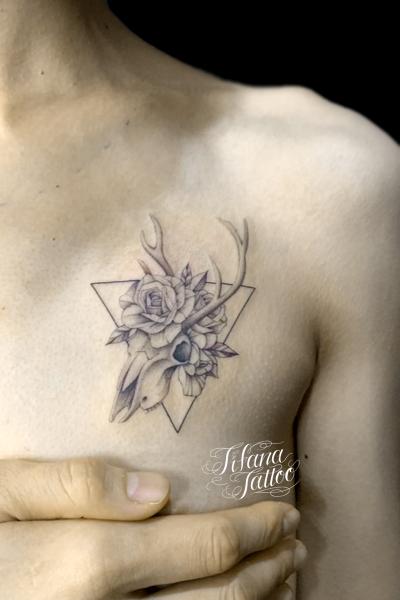 鹿の骨|薔薇|三角形のタトゥー タトゥー 一覧 > Tattoo by AKI 2020.02.23 鹿の骨|スカル、薔薇|バラ、三角形をひとつのデザインにまとめたガールズタトゥー。所要時間の目安は2時間前後です。 Style ガールズ 洋柄 Motif スカル 動物 植物 図形 Tattoo Tag 三角形 薔薇、ローズ Size タバコサイズ Body parts 胸