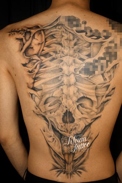 背骨のタトゥー タトゥー 一覧 > Tattoo by Kaz 2016.12.06 背骨、スカルをひとつのデザインにまとめたバックピース|背中一面のタトゥー|刺青作品です。 Style メンズ チカーノ・ブラック&グレイ 洋柄 Motif スカル Size 背中一面 Body parts 背中