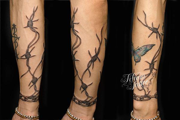 有刺鉄線のタトゥー タトゥー 一覧 > Tattoo by Mica 2015.01.18 腕に巻き付けるようにデザインした有刺鉄線のタトゥー|刺青作品です。所要時間の目安は3時間前後、1回で完成するサイズです。 Style メンズ 洋柄 Tattoo Tag 有刺鉄線 Size CDジャケット Body parts 腕