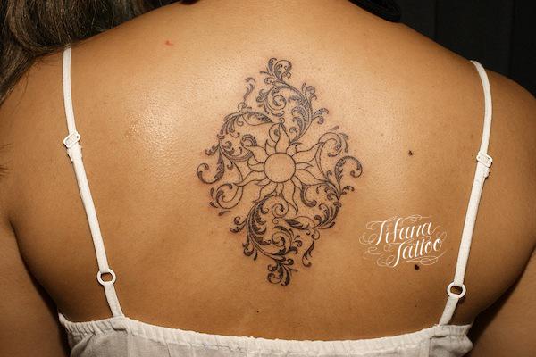 バロック・デザイン・タトゥー タトゥー 一覧 > Tattoo by Naoto 2015.11.01 太陽の周りをバロック調のデザインで装飾した背中の部位のタトゥー|刺青作品です。所要時間の目安は3時間前後です。 Style ガールズ 洋柄 Motif 宇宙 Tattoo Tag 太陽 Size CDジャケット Body parts 背中