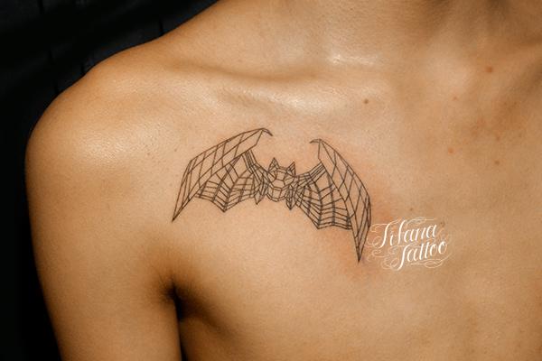 蝙蝠のタトゥー タトゥー 一覧 > Tattoo by Naoto 2015.01.22 蝙蝠|コウモリのモチーフを3Dポリゴンにデザインしたタトゥー|刺青作品です。完成までの所要時間の目安は1時間前後、です。 Style メンズ 洋柄 Motif 図形 Tattoo Tag コウモリ Size タバコサイズ Body parts 胸