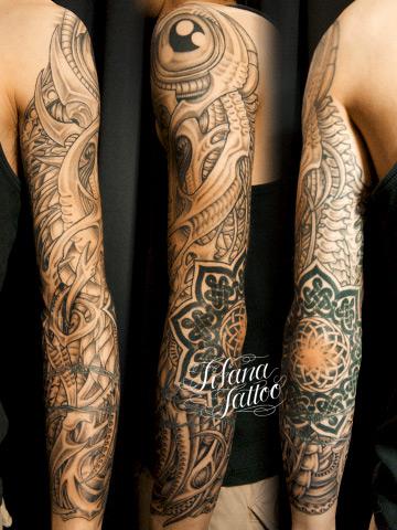バイオメカのフルスリーブタトゥー タトゥー 一覧 > Tattoo by Mica 2015.01.12 バイオメカのモチーフをフルスリーブ用にデザインしたタトゥー|刺青作品です。所要時間の目安は30時間前後、6回から8回で完成可能なサイズです。 Style メンズ 洋柄 Size 7分~フルスリーブ Body parts 腕