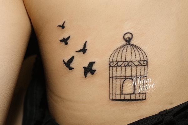 鳥カゴから逃げた鳥のタトゥー タトゥー 一覧 > Tattoo by Mica 2015.01.22 肩甲骨の下に鳥かごから脱走した鳥のシルエットを女性向けにデザインしたタトゥー|刺青作品です。完成までの所要時間の目安は1時間前後です。 Style ガールズ 洋柄 Motif 鳥 Size タバコサイズ Body parts 背中