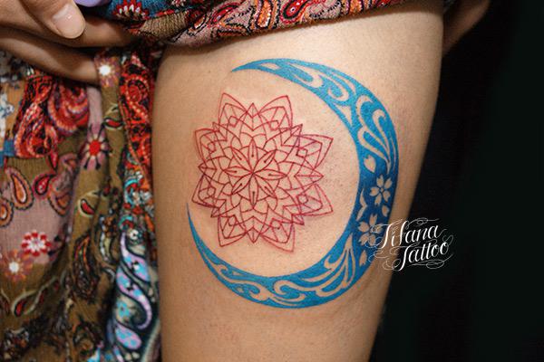 青い月と花柄のタトゥー タトゥー 一覧 > Tattoo by Mica 2015.01.06 青い月に花柄の規則的な模様をデザインしたガールズタトゥーです。所要時間の目安は3時間半前後、1回で完成するサイズです。 Style ガールズ 洋柄 Motif ヘナ・ペイズリー柄 宇宙 Size CDジャケット Body parts 脚