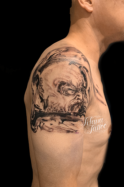 達磨大師の水墨画タトゥー タトゥー 一覧 > Tattoo by Mica 2024.06.29 持ち込みの達磨大師のモチーフを彫った水墨画タトゥー。所要時間の目安は5時間前後です。 Style メンズ 和柄 Size B5サイズ以上 Body parts 腕 胸