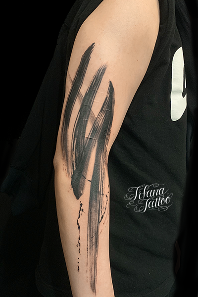 Brush Tattoo タトゥー 一覧 > Tattoo by Mica 2023.03.16 墨で描いたデザイン持ち込みのアブストラクト・タトゥー。所要時間の目安は5時間前後です。 Style メンズ 和柄 Tattoo Tag 抽象画 Size B5サイズ以上 Body parts 腕