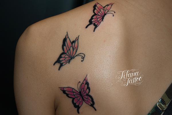 3匹の蝶のタトゥー タトゥー 一覧 > Tattoo by Mica 2014.12.28 3匹の蝶をピンク色で女性向けにデザインしたガールズタトゥーです。所要時間の目安は2時間半前後、1回で完成するサイズです。 Style ガールズ 洋柄 Motif 昆虫 Tattoo Tag 蝶 Size iphoneサイズ Body parts 肩