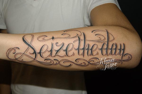Calligraphy Tattoo タトゥー 一覧 > Tattoo by Yosh 2015.01.07 英語のフレーズの文字をデザインしたレタリングタトゥーです。所要時間の目安は3時間半前後、1回の施術で完成可能なサイズです。 Style メンズ チカーノ・ブラック&グレイ レタリング Motif 文字・数字 Tattoo Tag 英語 Size CDジャケット Body parts 腕