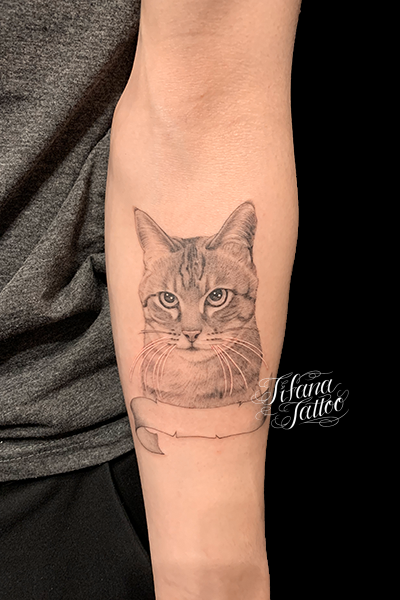 猫のポートレートタトゥー 2021.07.12 猫|ネコの写真を再現したポートレートタトゥー。所要時間の目安は3時間半前後です。 Style メンズ ガールズ チカーノ・ブラック&グレイ 洋柄 Motif 動物 ポートレイト Tattoo Tag 猫 Size iphoneサイズ Body parts 腕