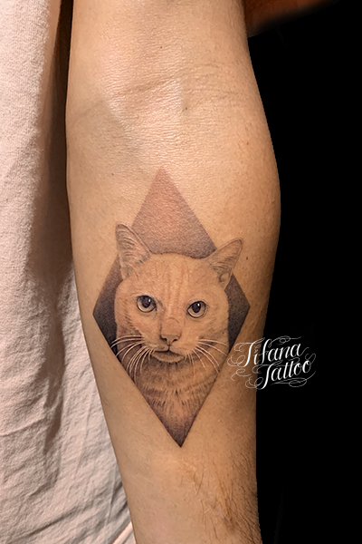 白猫のファインライン・タトゥー タトゥー 一覧 > Tattoo by AKI 2023.01.21 繊細な技法で白い愛猫の写真をリアルに表現したポートレート・タトゥー。完成までの来店回数は2回です。 Style ファインライン メンズ 洋柄 Motif 動物 ポートレイト Tattoo Tag 猫 Size iphoneサイズ Body parts 腕