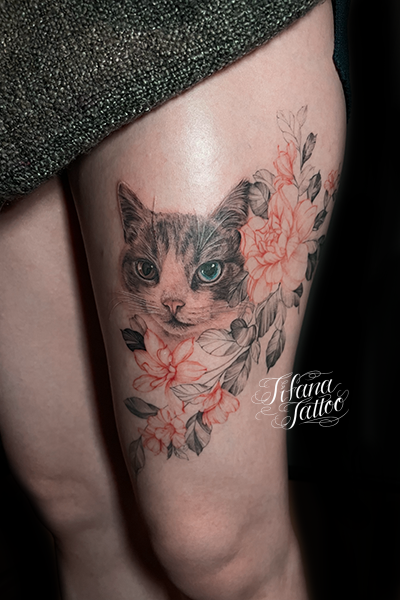 猫とボタニカルタトゥー タトゥー 一覧 > Tattoo by LEI 2023.08.16 愛猫に植物を組み合わせたタトゥー。完成までの来店回数の目安は2回です。 Style ガールズ 洋柄 Motif 動物 植物 Tattoo Tag 猫 Size B5サイズ以上 Body parts 脚