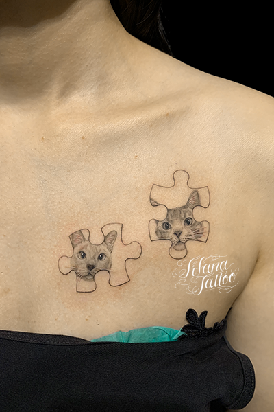 パズル×猫のファインライン・タトゥー タトゥー 一覧 > Tattoo by AKI 2023.10.23 パズル、愛猫をひとつのデザインにまとめたファインライン・タトゥー。所要時間の目安は5時間前後です。 Style ファインライン ガールズ 洋柄 Motif 動物 ポートレイト Tattoo Tag 猫 Size タバコサイズ Body parts 胸