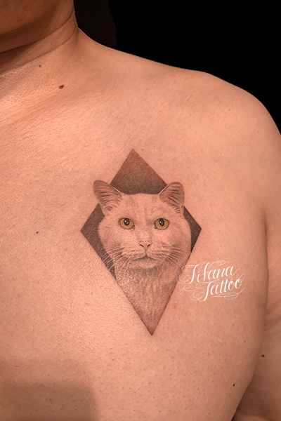 愛猫のポートレート・タトゥー タトゥー 一覧 > Tattoo by AKI 2023.11.26 愛猫の写真を繊細な技法でリアルに表現したファインライン・タトゥー。完成までの施術回数の目安は2回です。 Style ファインライン メンズ 洋柄 Motif 動物 ポートレイト Tattoo Tag 猫 Size iphoneサイズ Body parts 胸