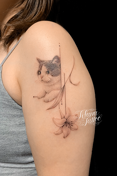 愛猫と百合のファインライン・タトゥー タトゥー 一覧 > Tattoo by AKI 2024.02.27 愛猫、百合|ユリの花、幾何学模様をを繊細な技法でリアルに表現したファインライン・タトゥー。完成までの施術回数は2回です。 Style ファインライン メンズ 洋柄 Motif 動物 植物 図形 Tattoo Tag 幾何学模様 猫 百合、ユリ Size iphoneサイズ Body parts 腕