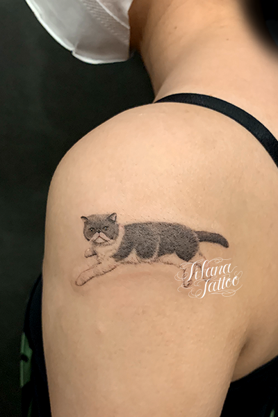 Beloved Cat Tattoo タトゥー 一覧 > Tattoo by AKI 2020.07.15 愛猫の写真をベースに繊細な雰囲気で表現したポートレート・タトゥー。所要時間の目安は3時間前後です。 Style ガールズ 洋柄 Motif 動物 ポートレイト Tattoo Tag 猫 Size タバコサイズ Body parts 肩