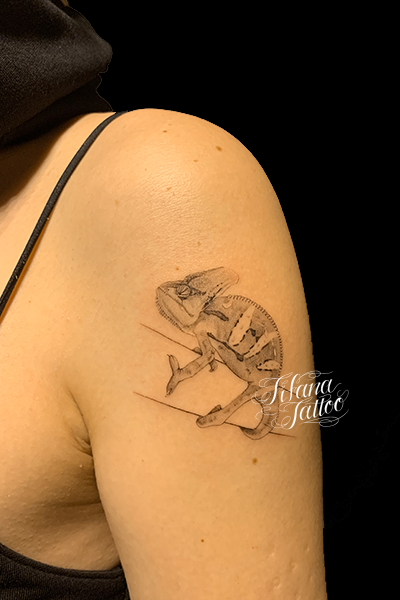 カメレオンのファインライン・タトゥー タトゥー 一覧 > Tattoo by AKI 2022.06.15 カメレオンの写真を繊細な技法で表現したファインライン・タトゥー。所要時間の目安は4時間前後です。 Style ファインライン ガールズ 洋柄 Motif 爬虫類 Tattoo Tag カメレオン Size iphoneサイズ Body parts 腕