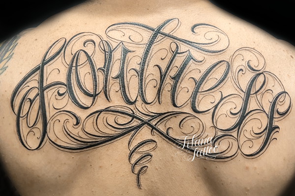 チカーノ・レタリングタトゥー タトゥー 一覧 > Tattoo by Yosh 2021.07.05 英語の文字をカスタムデザインしたチカーノ・レタリングタトゥー。所要時間の目安は8時間前後です。 Style メンズ チカーノ・ブラック&グレイ レタリング Motif 文字・数字 Size B5サイズ以上 Body parts 背中