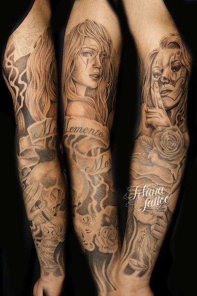 クラウンガールのチカーノ・タトゥー タトゥー 一覧 > Tattoo by Mica 2022.01.04 クラウンガール、レタリング、薔薇、スカルなど様々なモチーフを組み合わせたフルスリーブ・タトゥー。所要時間の目安は40時間前後です。 Style メンズ チカーノ・ブラック&グレイ 洋柄 Motif スカル 文字・数字 Tattoo Tag クラウンガール 薔薇、ローズ Size 7分~フルスリーブ Body parts 腕