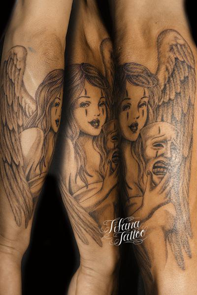 クラウンメイクの女神タトゥー タトゥー 一覧 > Tattoo by Mica 2019.10.25 ツーフェイスのマスクを持たせたクラウンメイクの女神をデザインしたチカーノタトゥー。所要時間の目安は5時間前後です。 Style メンズ チカーノ・ブラック&グレイ 洋柄 Motif 女神 Tattoo Tag ツーフェイス Size B5サイズ以上 Body parts 腕