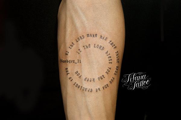 円形のレタリングタトゥー タトゥー 一覧 > Tattoo by Kaz 2015.01.02 円形の構図に文字をデザインしたレタリングタトゥーです。完成までの所要時間の目安は2時間前後です。 Style メンズ レタリング Motif 文字・数字 図形 Size タバコサイズ Body parts 腕