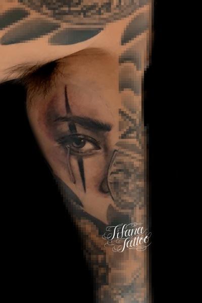 目|クラウンメイクのタトゥー タトゥー 一覧 > Tattoo by Kaz 2019.12.16 クラウンガールのメイクをした目のモチーフを脇腹の隙間に彫ったチカーノタトゥー。所要時間は2時間前後です。 Style メンズ チカーノ・ブラック&グレイ 洋柄 Motif 人体パーツ Tattoo Tag 目 Size iphoneサイズ Body parts 脇