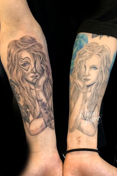 クラウンガールのタトゥー タトゥー 一覧 > Tattoo by Mica 2020.10.10 左右の前腕に同じサイズ感で女性のモチーフをデザインしたチカーノタトゥーです。所要時間の目安は両方で12 時間前後です。 Style メンズ チカーノ・ブラック&グレイ 洋柄 Motif シンメトリー ポートレイト Tattoo Tag クラウンガール 女 Size B5サイズ以上 Body parts 腕
