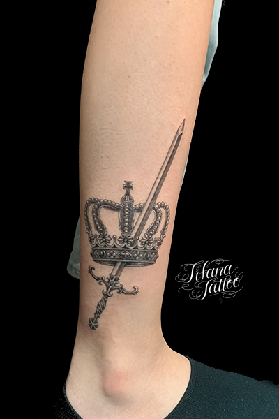 王冠|剣のファインライン・タトゥー タトゥー 一覧 > Tattoo by Mica 2023.03.24 王冠、剣をひとつのデザインにまとめたファインライン・タトゥー。所要時間の目安は5時間前後です。 Style ファインライン メンズ ガールズ 洋柄 Motif アクセサリー ヘナ・ペイズリー柄 武器 Tattoo Tag 剣 王冠 Size iphoneサイズ Body parts 足