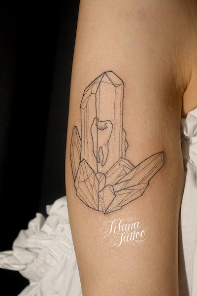 結晶と歯のタトゥー タトゥー 一覧 > Tattoo by Mica 2019.04.26 結晶の中に歯というユニークなデザインのタトゥーです。所要時間の目安は1時間前後です。 Style ガールズ 洋柄 Motif ラッキーアイテム Size タバコサイズ Body parts 腕