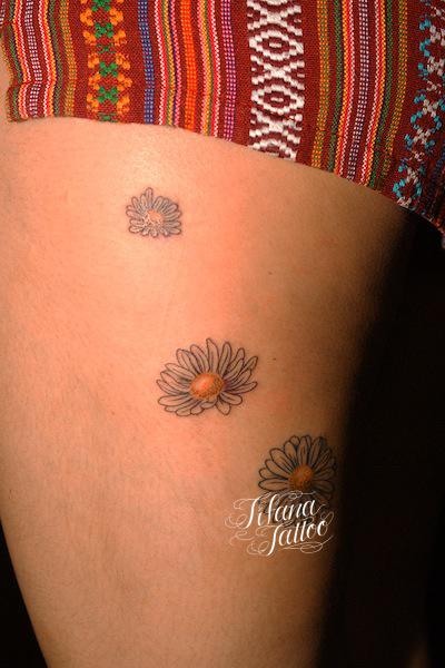 デイジーのガールズタトゥー タトゥー 一覧 > Tattoo by Mica 2015.04.10 脚の部位にデイジーの花を女性向けにデザインしたガールズタトゥーです。 Style ガールズ 洋柄 Motif 植物 Size タバコサイズ Body parts 脚