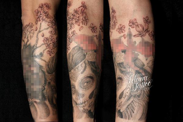 DAY OF THE DEAD TATTOO タトゥー 一覧 > Tattoo by Mica 2015.03.26 Day of the Deadのチカーノタトゥー作品画像です。 Style メンズ チカーノ・ブラック&グレイ 洋柄 Size B5サイズ以上 Body parts 腕