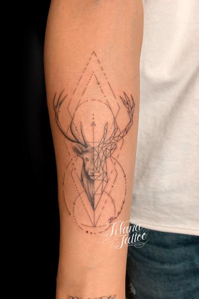 鹿のジオメトリックタトゥー タトゥー 一覧 > Tattoo by AKI 2020.03.07 鹿|シカのモチーフ、幾何学模様をひとつのデザインにまとめたジオメトリック・タトゥー。所要時間の目安は3時間前後です。 Style メンズ 洋柄 Motif 動物 図形 Tattoo Tag 幾何学模様 鹿、シカ Size iphoneサイズ Body parts 腕