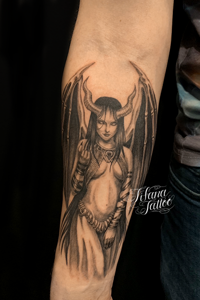 悪魔のタトゥー タトゥー 一覧 > Tattoo by Mica 2023.08.14 女性の悪魔のモチーフをデザインしたタトゥー。所要時間の目安は6時間前後です。 Style メンズ 洋柄 Motif 天使・悪魔 Size B5サイズ以上 Body parts 腕