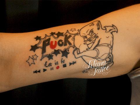 悪魔と文字のタトゥー タトゥー 一覧 > Tattoo by Mica 2015.01.09 悪魔のモチーフと文字をロゴ風にデザインしたタトゥー|刺青作品です。所要時間の目安は2時間前後、1回の施術で完成するサイズです。 Style メンズ 洋柄 Motif 天使・悪魔 ロゴ・マーク Tattoo Tag 悪魔 Size iphoneサイズ Body parts 腕