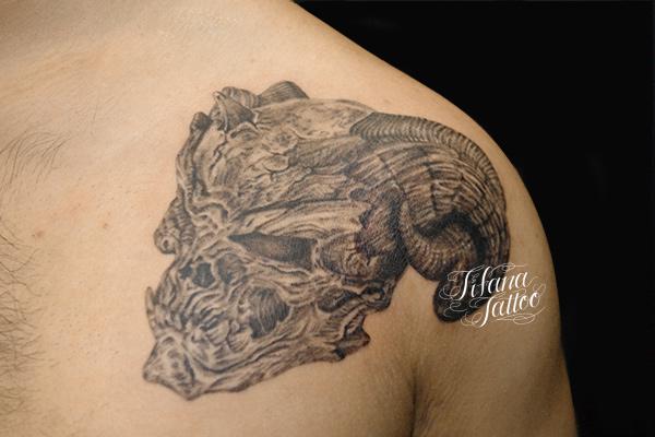 悪魔のスカル・タトゥー タトゥー 一覧 > Tattoo by Mica 2015.01.02 悪魔のスカルのイメージをデザインしたタトゥー|刺青作品です。所要時間の目安は4時間前後、1回で完成するサイズです。 Style メンズ 洋柄 Motif スカル Size CDジャケット Body parts 胸