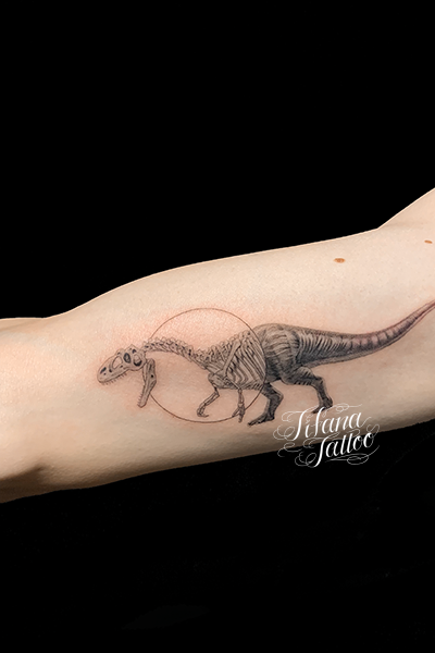 恐竜のファインライン・タトゥー タトゥー 一覧 > Tattoo by AKI 2024.04.03 恐竜のモチーフを繊細なタッチで図形と共にデザインしたファインライン・タトゥー。所要時間の目安は5時間前後です。 Style ファインライン メンズ 洋柄 Motif 動物 Tattoo Tag 恐竜 Size iphoneサイズ Body parts 腕