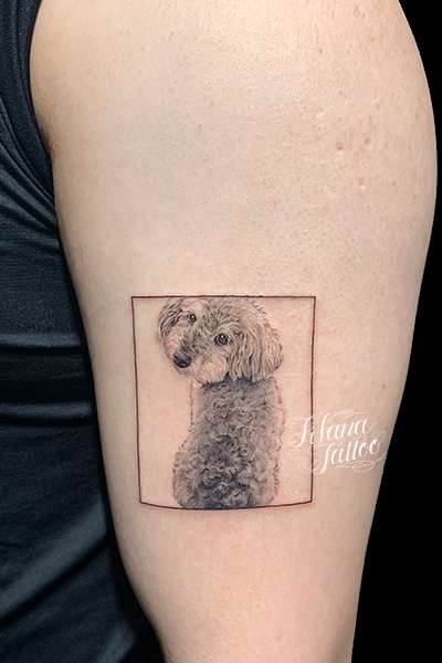 愛犬|トイプードルのポートレート・タトゥー タトゥー 一覧 > Tattoo by AKI 2022.06.07 愛犬の写真を繊細な技法でリアルに再現したファインライン・タトゥー。所要時間の目安は5時間前後です。 Style ファインライン メンズ 洋柄 Motif 動物 Tattoo Tag 犬 Size タバコサイズ Body parts 腕