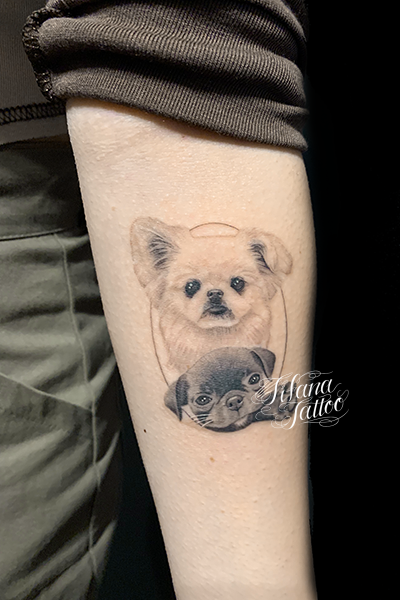2匹の愛犬を組み合わせたファインライン・タトゥー タトゥー 一覧 > Tattoo by AKI 2023.05.24 2匹の愛犬を組み合わせたポートレート・タトゥー。完成までの来店回数は2回です。 Style ファインライン メンズ ガールズ 洋柄 Motif 動物 ポートレイト Tattoo Tag 犬 Size タバコサイズ Body parts 腕
