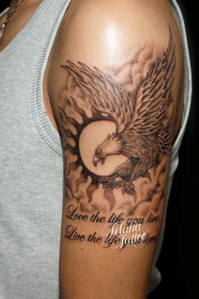 イーグル|EAGLEのタトゥー タトゥー 一覧 > Tattoo by Kaz 2015.01.24 イーグル|鷹|鷲のモチーフの背景に太陽、雲、文字をデザインしたタトゥー|刺青作品です。所要時間の目安は10時間前後、2回前後で完成するサイズです。 Style メンズ 洋柄 Motif 鳥 Tattoo Tag 鷲、ワシ、鷹、タカ Size CDジャケット Body parts 肩