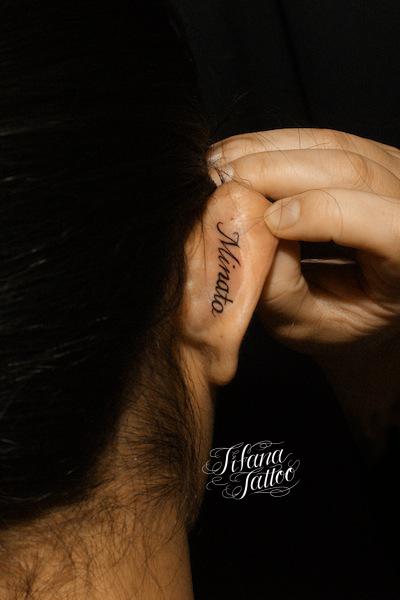 耳のレタリングタトゥー タトゥー 一覧 > Tattoo by Naoto 2016.02.28 耳の裏側の部位に筆記体の書体で彫ったレタリング|文字のタトゥーです。所要時間の目安は30分前後です。 Style ガールズ レタリング Motif 文字・数字 Size ワンポイント Body parts 耳