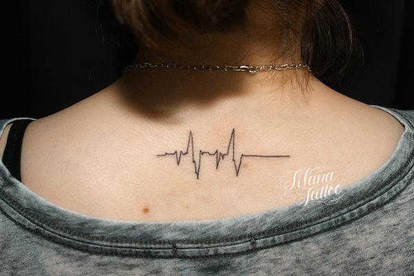心電図タトゥー タトゥー 一覧 > Tattoo by Kaz 2015.09.22 心電図のデザインを首下に彫ったワンポイントタトゥーです。所要時間の目安は10分前後です。 Style ガールズ 洋柄 Motif 図形 Size ワンポイント Body parts 首