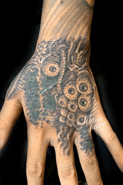 目玉のバイオタトゥー タトゥー 一覧 > Tattoo by Mica 2020.10.12 目玉をベースにバイオ調のデザインを仕上げた作品。所要時間の目安は5時間前後です。 Style メンズ 洋柄 Motif 人体パーツ Tattoo Tag バイオ Size CDジャケット Body parts 手