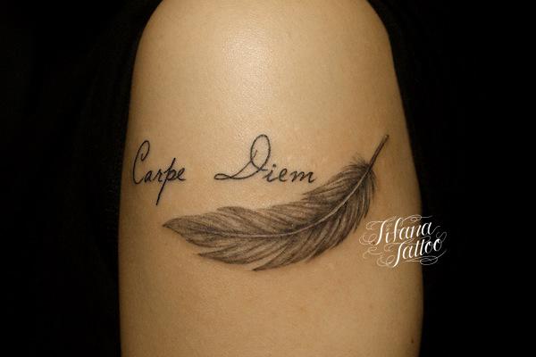 羽と文字のタトゥー タトゥー 一覧 > Tattoo by Mica 2019.03.31 羽|フェザー、文字|レタリングをひとつのデザインにまとめたタトゥーです。所要時間の目安は1時間前後です。 Style メンズ ガールズ 洋柄 Motif 羽・翼 Size タバコサイズ Body parts 腕