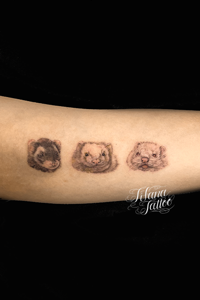 フェレットのポートレートタトゥー タトゥー 一覧 > Tattoo by LEI 2022.09.29 フェレットの写真を繊細な技法でリアルに再現したファインライン・タトゥー。所要時間の目安は7時間前後です。 Style ファインライン ガールズ 洋柄 Motif 動物 ポートレイト Size iphoneサイズ Body parts 腕