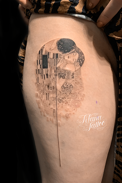絵画のファインライン・タトゥー タトゥー 一覧 > Tattoo by AKI 2024.05.22 絵画をモチーフにしたファインライン・タトゥー。所要時間の目安は7時間前後です。 Style ファインライン メンズ 洋柄 Size B5サイズ以上 Body parts 脚