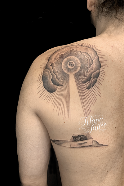 希望の光のタトゥー タトゥー 一覧 > Tattoo by AKI 2024.05.25 捨て猫と空から降り注ぐ希望の光をデザインしたオリジナル・ファインライン・タトゥー。所要時間の目安は8時間前後です。 Style ファインライン メンズ 洋柄 Motif 動物 宇宙 Tattoo Tag 猫 雲 Size B5サイズ以上 Body parts 背中