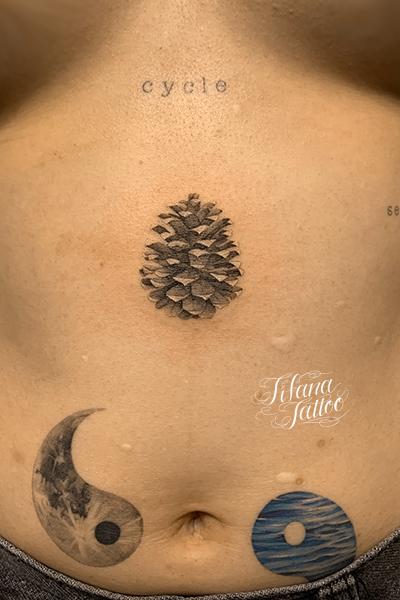 マツボックリのファインライン・タトゥー タトゥー 一覧 > Tattoo by AKI 2022.08.29 松ぼっくり|マツボックリのモチーフを繊細な技術で表現したファインライン・タトゥー。所用時間の目安は4時間前後です。 Style ファインライン ガールズ 洋柄 Motif 植物 Size タバコサイズ Body parts 腹